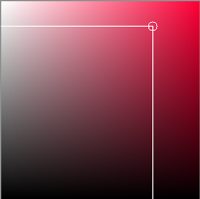 A posição, nada mais é do que o ponto de encontro de duas retas; é o que acontece no plano cartesiano. No caso das cores, é a variação da cor para o branco (horizontal), e a variação da cor para o preto (vertical), representados pelos valores de 0 a 255.